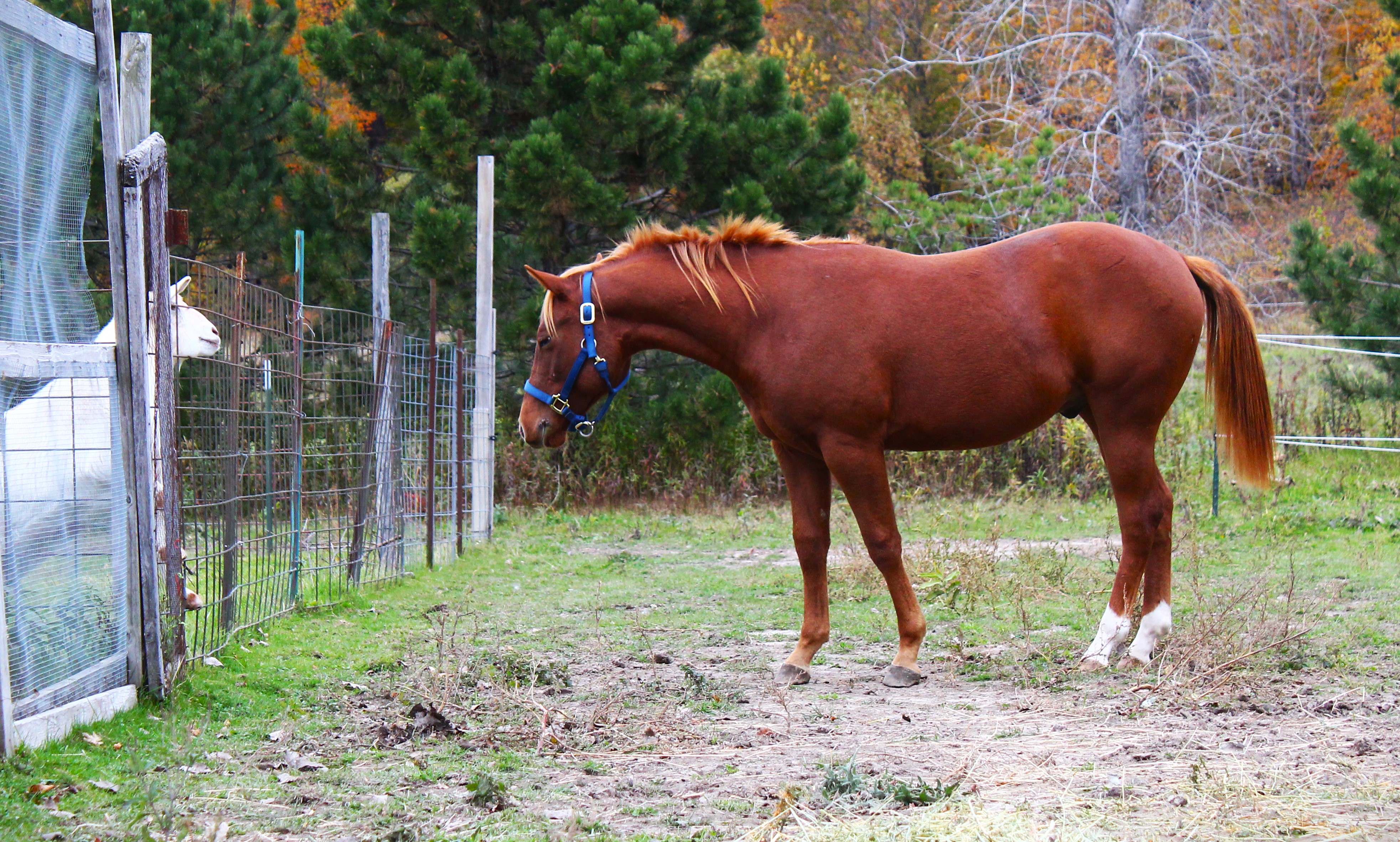 This October we bought a new horse! He is a 17-month-old Quarter Horse colt (gelded). He’s a very sweet horse, but needs to learn a lot about manners! He needs to be trained in pretty much everything… leading, backing up, picking up feet, groundwork manuevers, etc; and eventually riding. More later! Enjoy the pics!